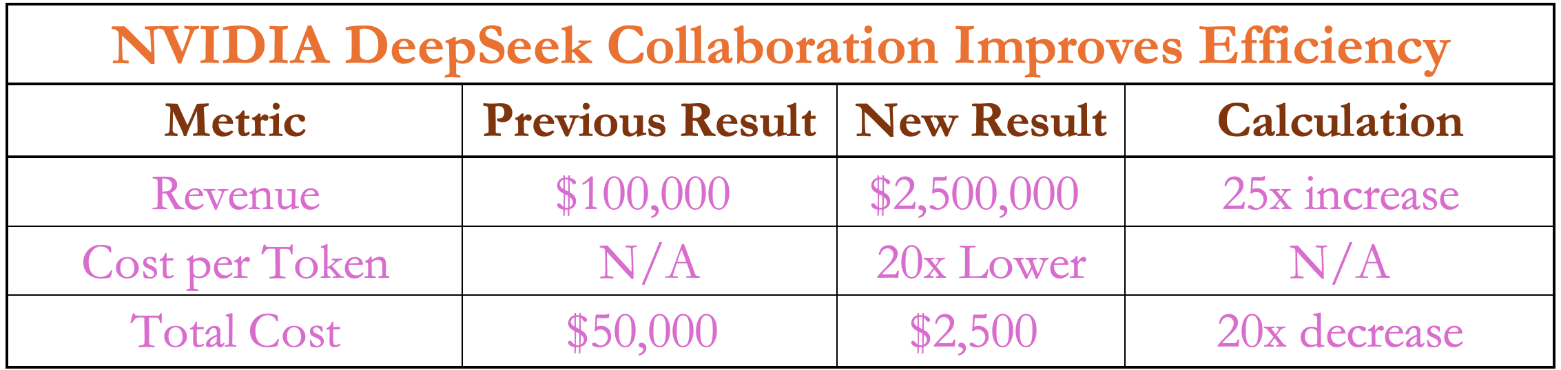 Additionally, NVIDIA and DeepSeek are demonstrating that strategic relationships rather than rivalry could release AI's full potential. Just in a month, Nvidia’s R1 model optimization, achieved through collaboration with DeepSeek, have made AI inference 25 times more profitable and 20 times cheaper per token.